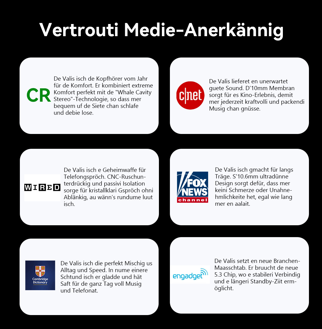 Valis liefert HiFi-Qualität, die sicherstellt, dass Ihre einschläfernde Weißrauschmusik, ASMR oder sanfte Klänge in der reinsten und detailliertesten Form wiedergegeben werden. Mit einer breiten, ausgewogenen Klangbühne und tiefem Bass schafft es eine komfortable und stabile Hörumgebung, die Ihnen hilft, schneller und tiefer zu entspannen und für eine hochwertige, mühelose Nachtruhe zu sorgen.
